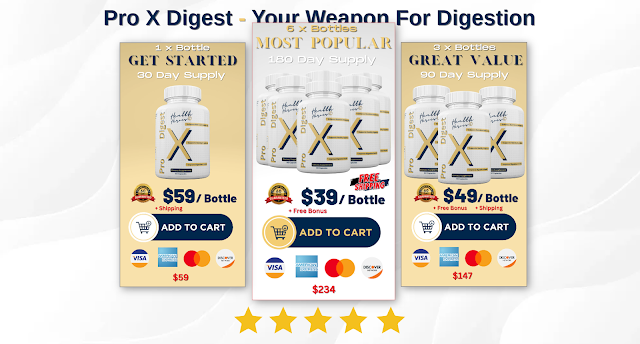 Pro X Digest formulation contains ingredients tested in third-party labs and proven to support the digestive system. The probiotic strains maintain the balance of gut microbiota, and the blend of enzymes breaks down food particles into a more straightforward form, enabling easier digestion and absorption. In addition, the supplement reduces inflammation and addresses the symptoms of digestive health issues, including irritable bowel syndrome. Consumers can purchase the digestive support formula on the official website and get a free bonus and discounts. Visit the official website to learn more today!